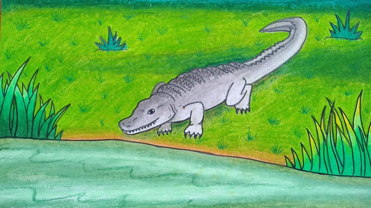Menggambar pemandangan alam dan kura kura || Cara menggambar dan mewarnai kura kura