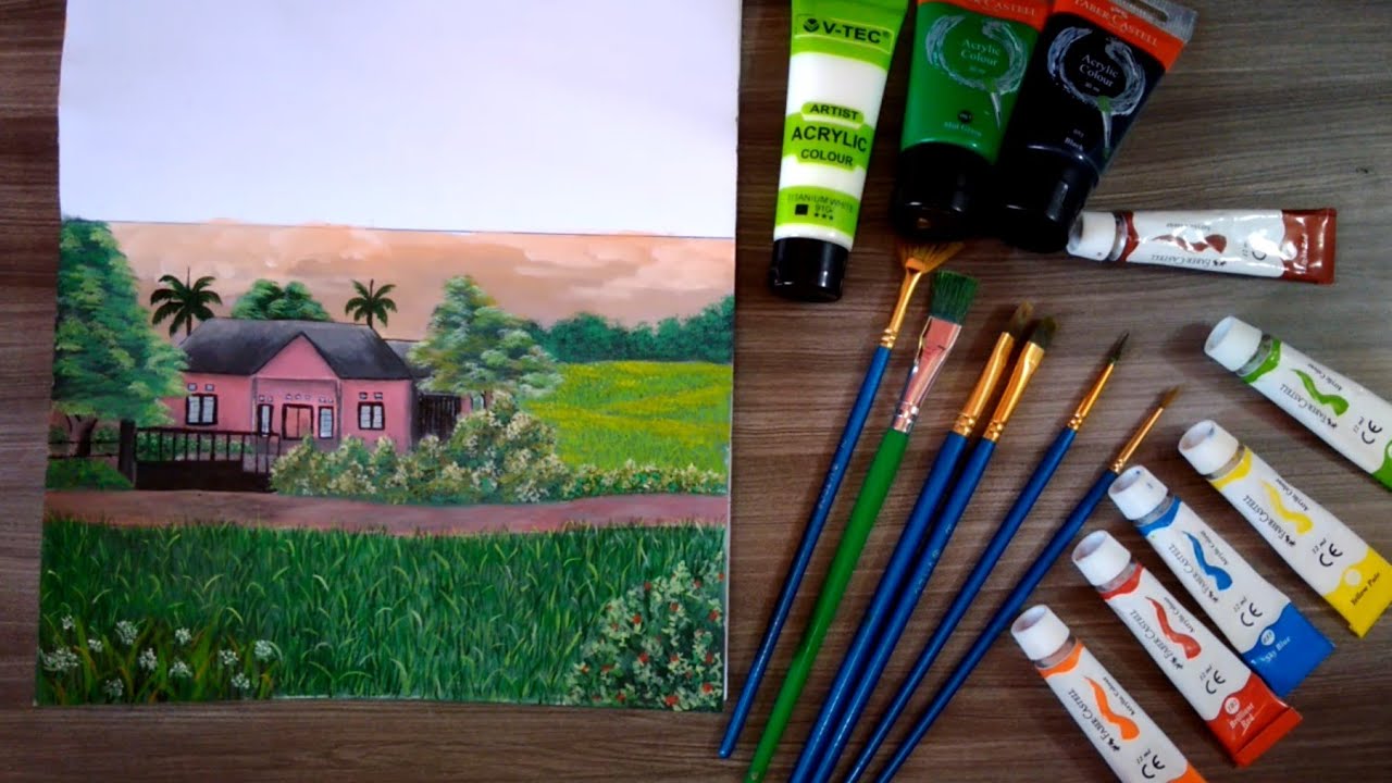 Cara mudah melukis menggunakan cat akrilik / landscape painting / painting practice routine
