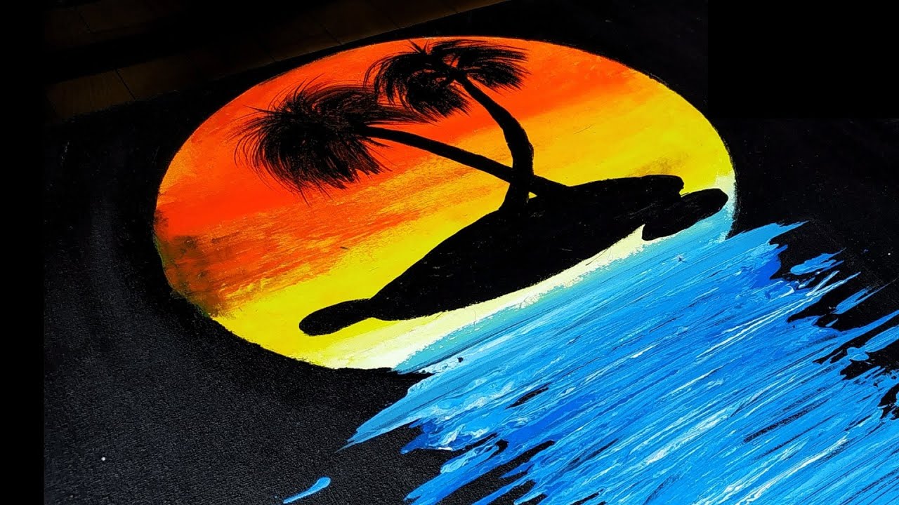 Cara melukis sunset sederhana | Sunset acrylic painting for beginners