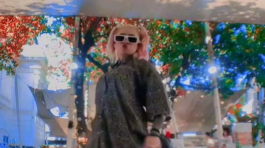 Celana pendek warna merah muda daging dipadukan dengan kaos kaki putih, cewek percaya diri berjoget