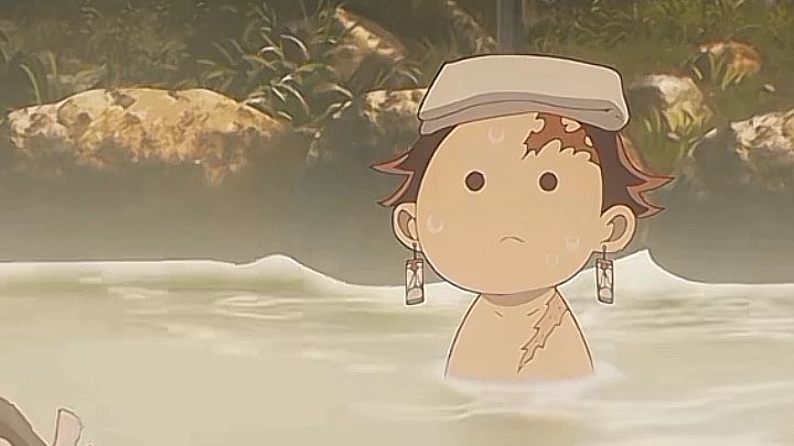 Tanjiro berhasil mendorong batu sejauh satu cho