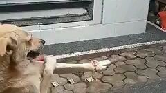 Anjing liar betina membawa anak-anak anjingnya ke lantai 11, hanya untuk mencarikan keluarga yang ba