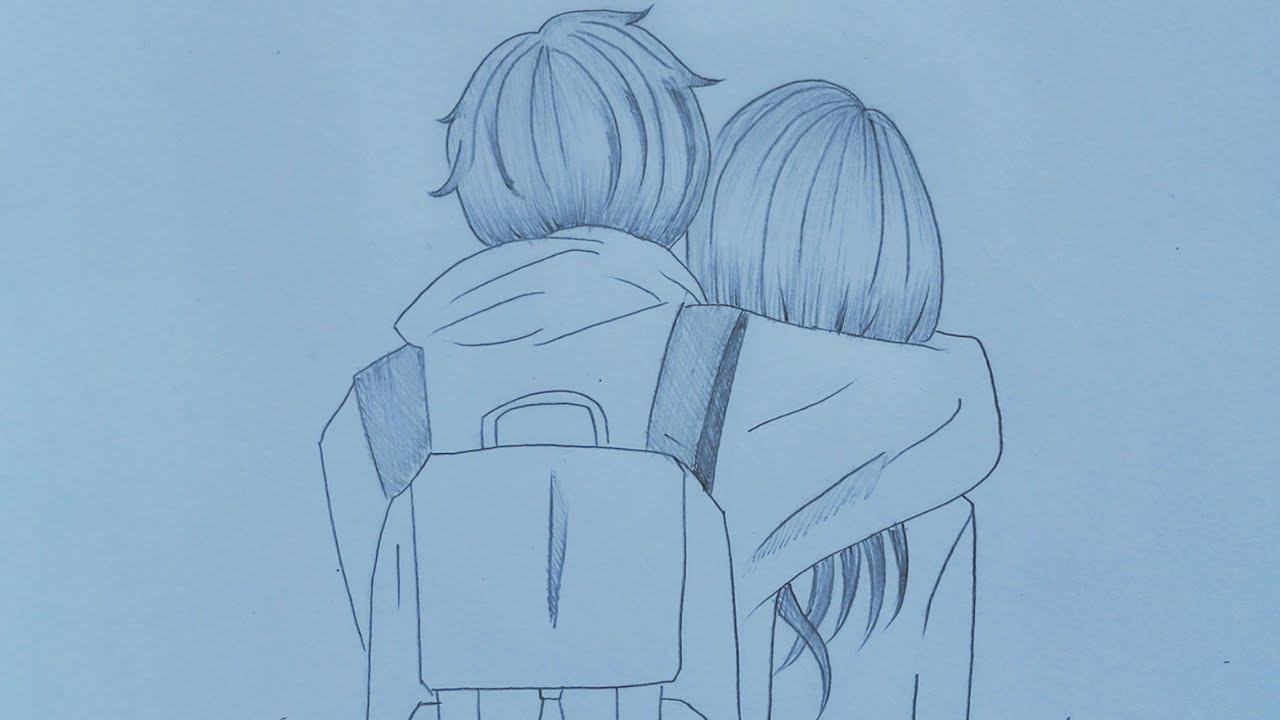 Menggambar Anime Islami Sedang Bergandengan Tangan