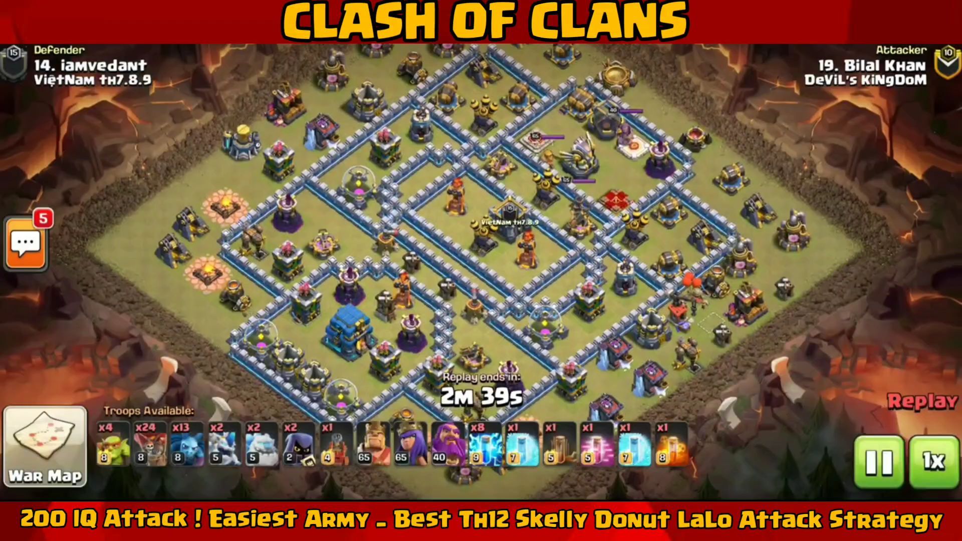 200 IQ Attack ! Easiest Army _ Best Th12 Skelly Donut LaLo Attack Strategy #3
