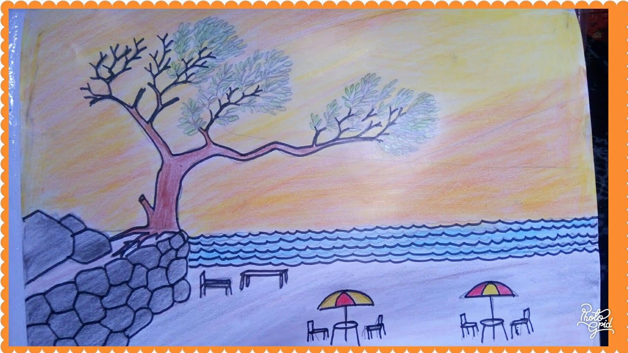 Cara Mudah Menggambar Pemandangan pantai dan Gunung yang Indah | Tutorial Indonesia