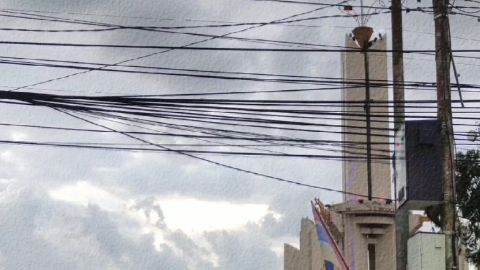 Benda berbetuk segitiga warna hitam tiba tiba muncul dibalik awan dan terbang menuju kota