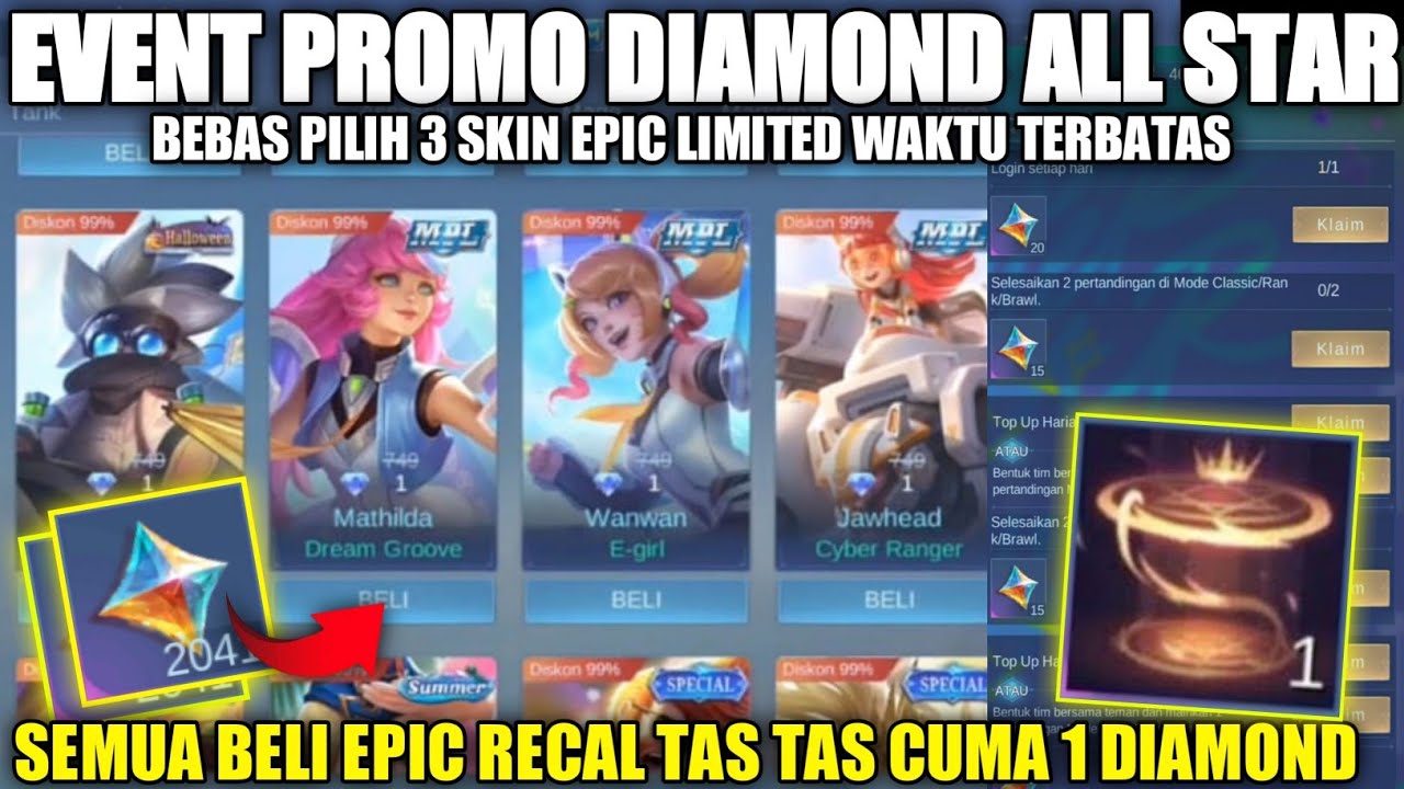 CARA BELI SKIN EPIC LIMIT DAN RECALL TAS TAS EPIC 1 DIAMOND ALL STAR SKIN EPIC 1 DIAMOND MLBB