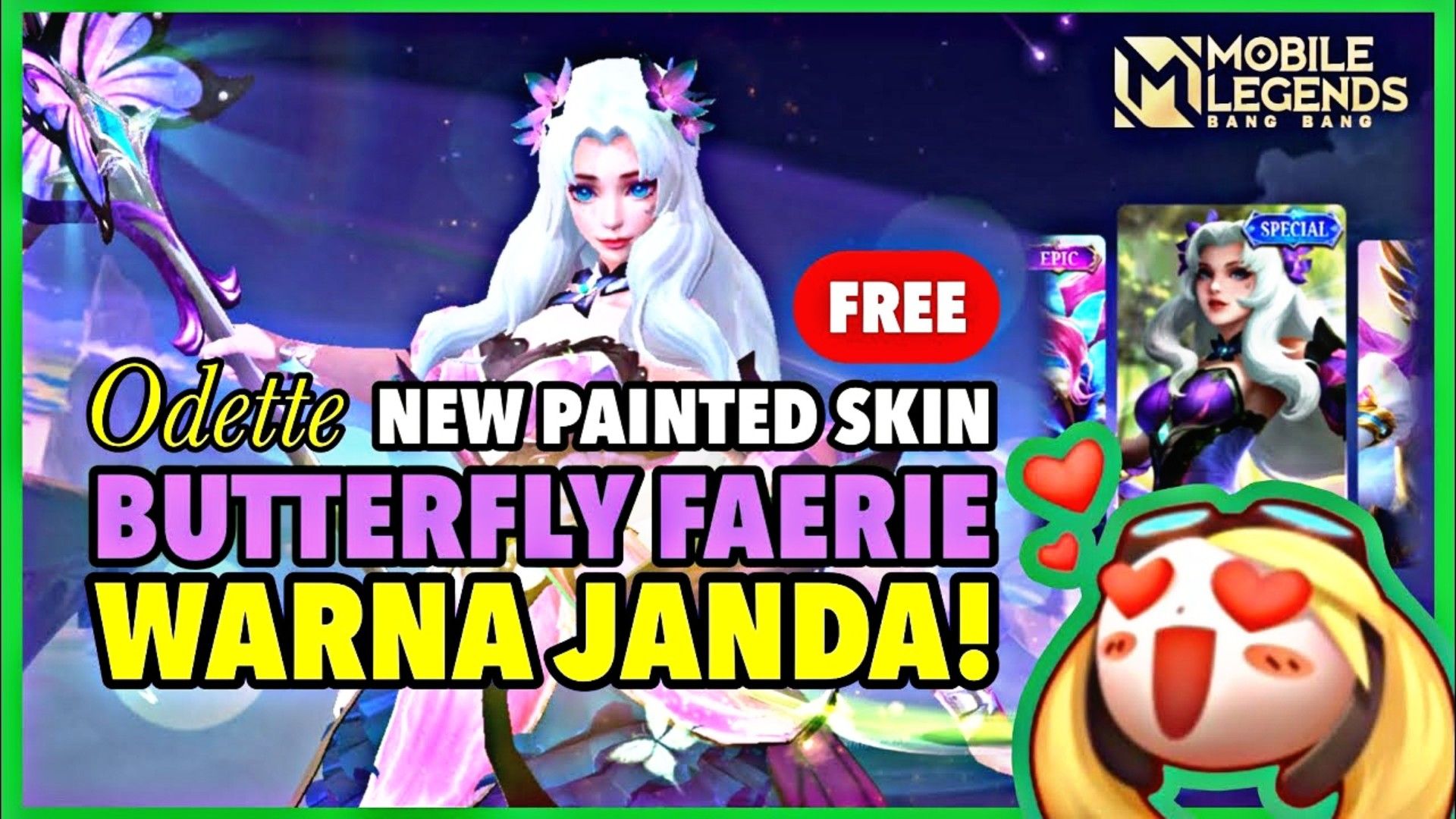 assalamualaikum semuanya dikesempatan kali ini saya mau review skin terbaru dari Hero ODETTE ,ini termasuk skin painted-nya ya dari skin spesial ODETTE yang butterfly buat kalian yang belum ambil skin nya buruan ambil nih mumpung gratis ya , selamat menyaksikan
