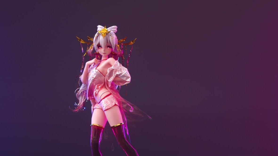 Kain MD MMD neon PAKU C4D OC rendering (layar vertikal)
