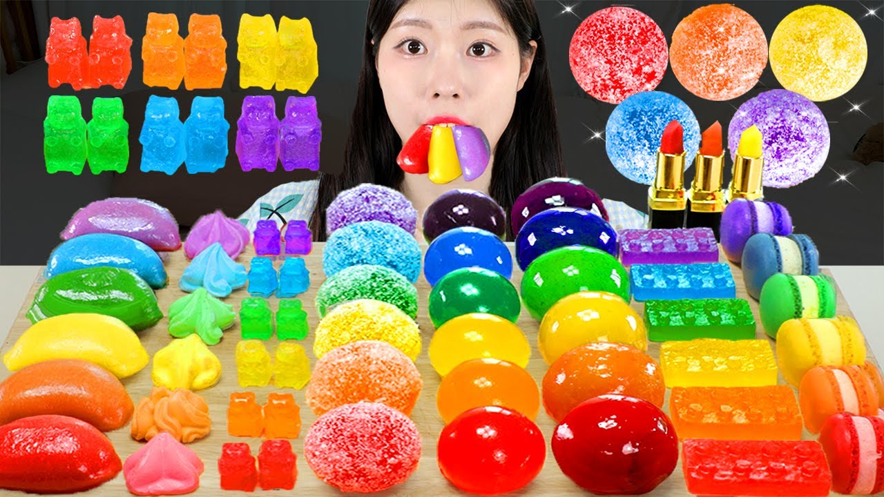 ASMR MUKBANG| 노란색 디저트 아이스크림 마카롱 젤리 먹방 & 레시피 DESSERT ICE CREAM MACARONS EATING