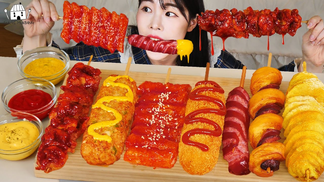 ASMR MUKBANG| 직접 만든 불닭 로제 떡볶이 킬바사 소세지 핫도그 양념치킨 먹방 & 레시피 FIRE NOODLES AND Tteokbokki EATING