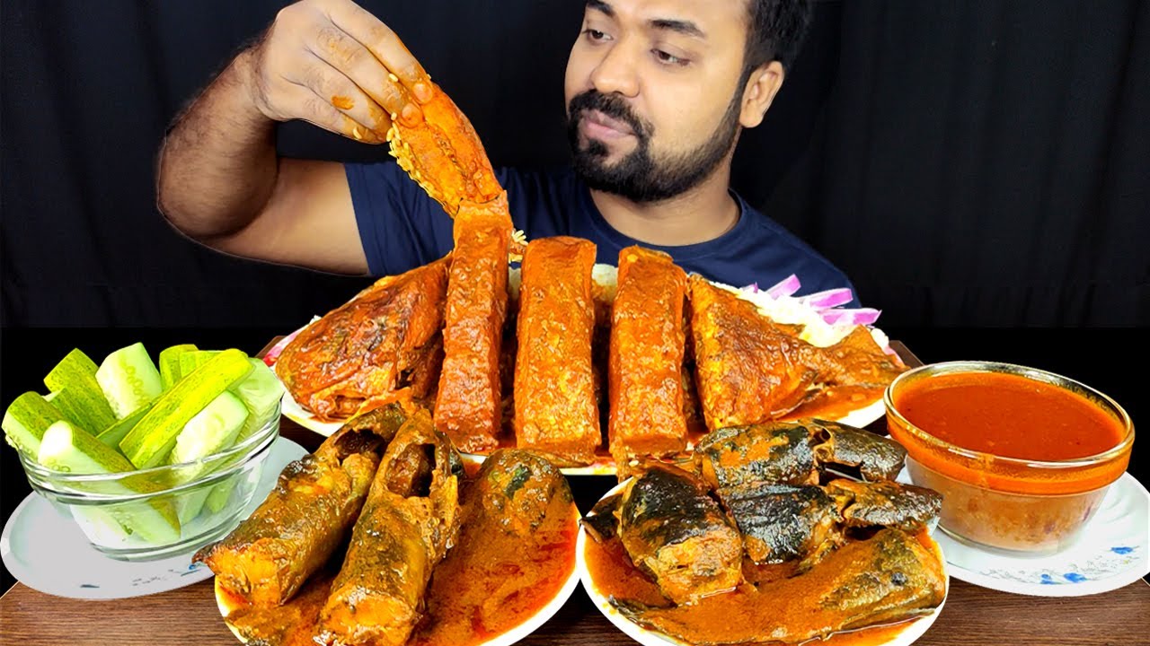 3 BIG WHOLE FISH CURRY, BRINJAL FRY, RICE, SALAD, CHILI, ONION ASMR MUKBANG EATING SHOW| #LiveToEATT