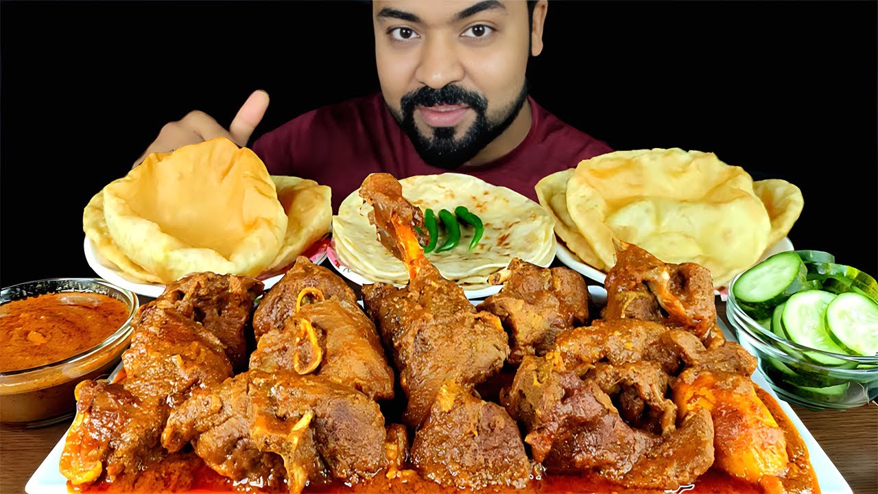 HUGE SPICY EGG MUTTON CURRY, MUTTON GRAVY, SOFT LUCHI/ PURI, SALAD, CHILI MUKBANG ASMR EATING SHOW |