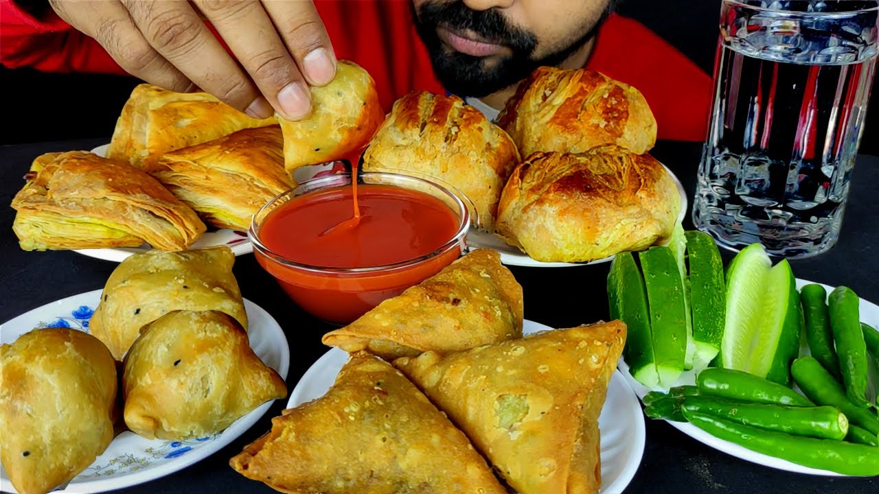 HUGE SPICY MUTTON ROGAN JOSH, SOFT LUCHI/ PURI, NAAN, SALAD, CHILI, ONION ASMR MUKBANG EATING SHOW |