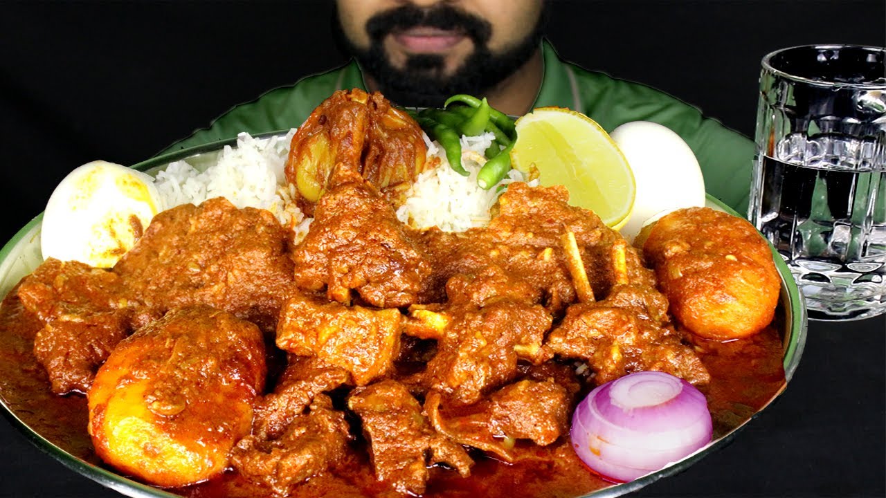 SPICY MUTTON CURRY, EGG CURRY, CHICKEN ROAST, GULAB JAMUN, YOGURT, RICE ASMR MUKBANG EATING |