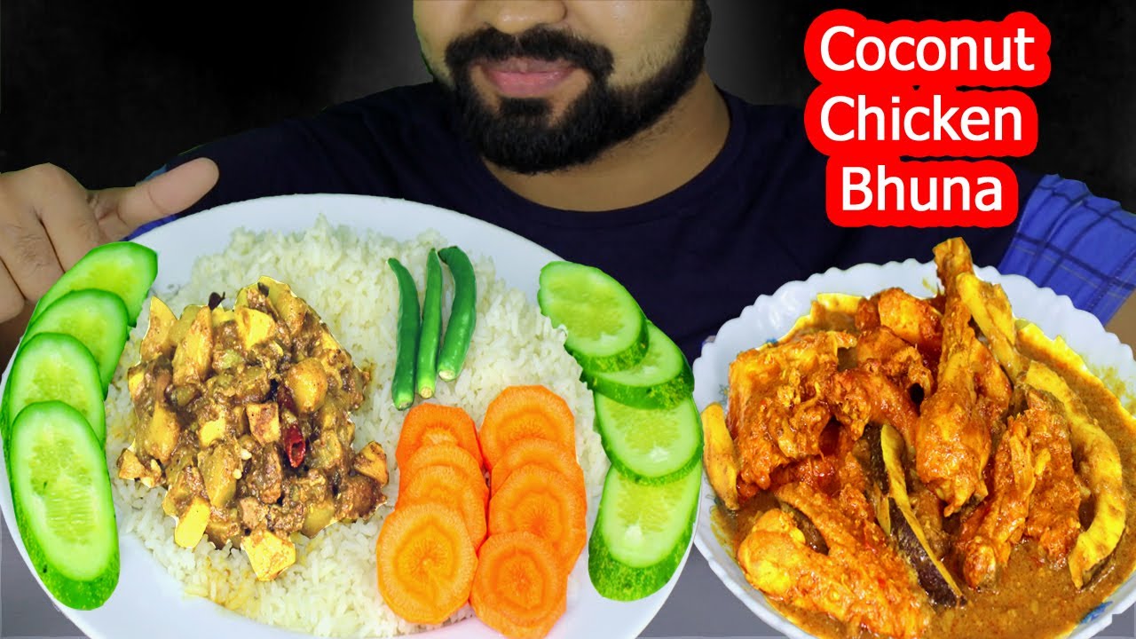 SPICY WHOLE CHICKEN CURRY, HUGE EGG CURRY, PAKORA, GRAVY, RICE, SALAD ASMR MUKBANG EATING SHOW ||