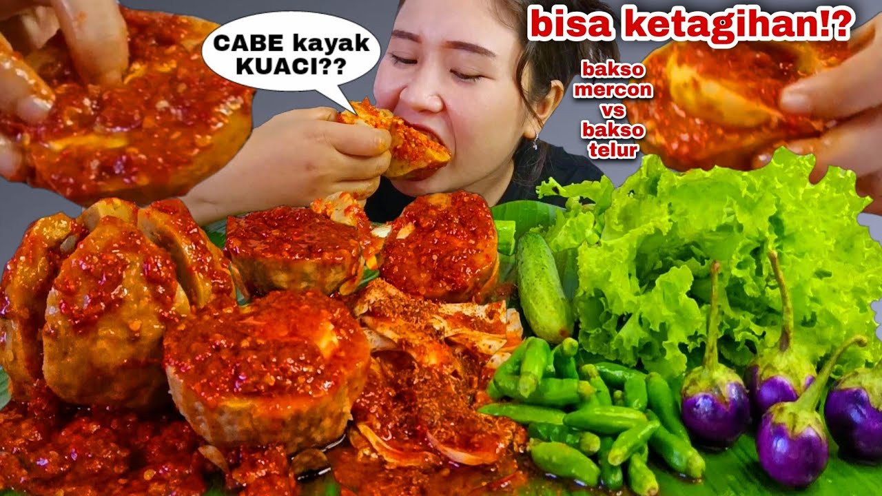 PEDAS MEMBAR4⁉️ MIE SAMYANG BAKSO TELUR AYAM PEDAS DENGAN LALAPAN MENTAH MUKBANG