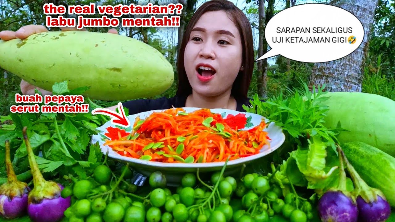 MUKBANG LALAPAN MENTAH + SAYUR MENTAH TANPA NASI SAMBAL TERASI#lalapanmentah#vegetarian#mukbang