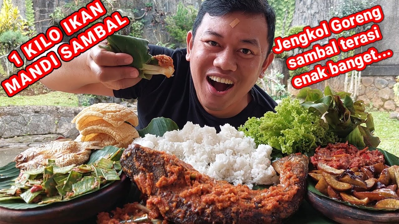 MUKBANG CEKER PEDAS LALAPAN JENGKOL MENTAH IKAN ASIN SAMBAL TERASI eating spicy chicken feet