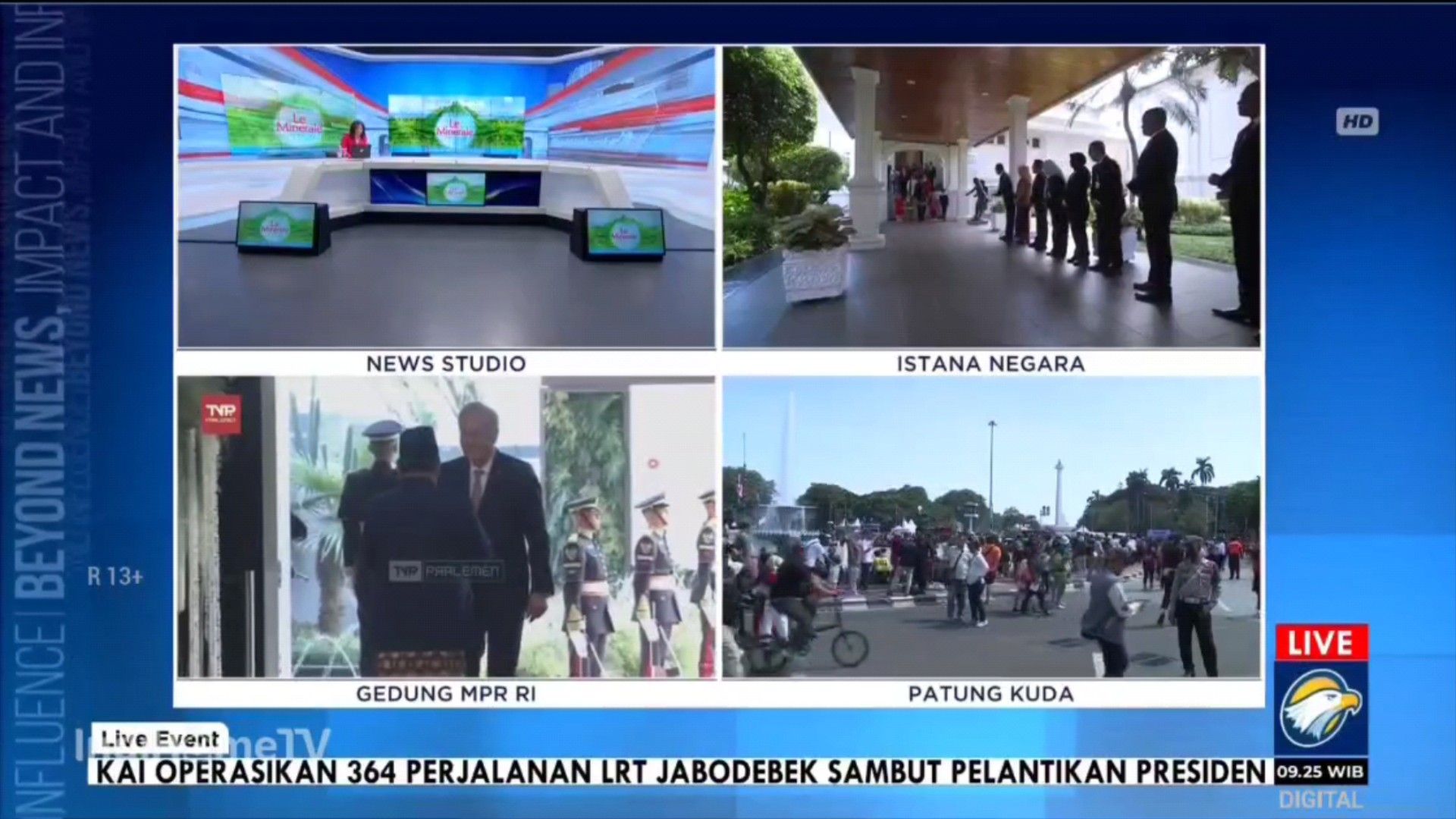 Siaran Langsung Live Event TVRI Pelantikan Republik Indonesia 2024 - 2029 Sejak Tahun ( 2014 ) Tayang Ulang Live streaming MetroTV HD Aktual Tajam Debat Dialog Capres Cawapres Pukul 09:00 - 09:21 WIB Durasi Penuh Tanpa Iklan 720P HD Saluran Rekaman IndiHomeTV TVOD Schedule Jadwal Tayang Berita