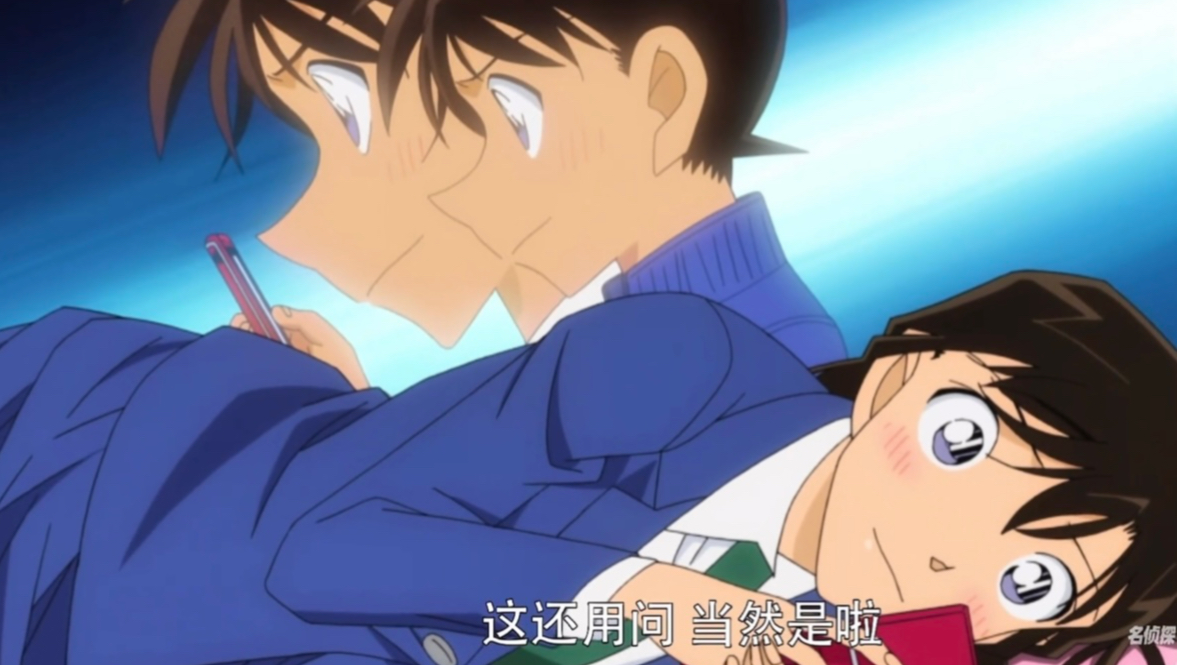 Xinlan dan Conan Xiaolan Shinichi menyaksikan komentar yang dibuat oleh guru pengisi suara di episod
