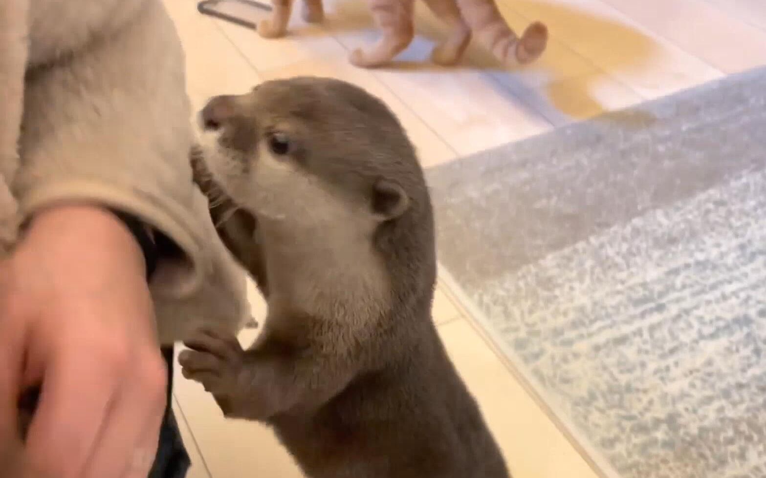 Setelah pemiliknya berpura-pura digigit... reaksi berang-berang lucu sekali! 【Bunga sakura kecil dan