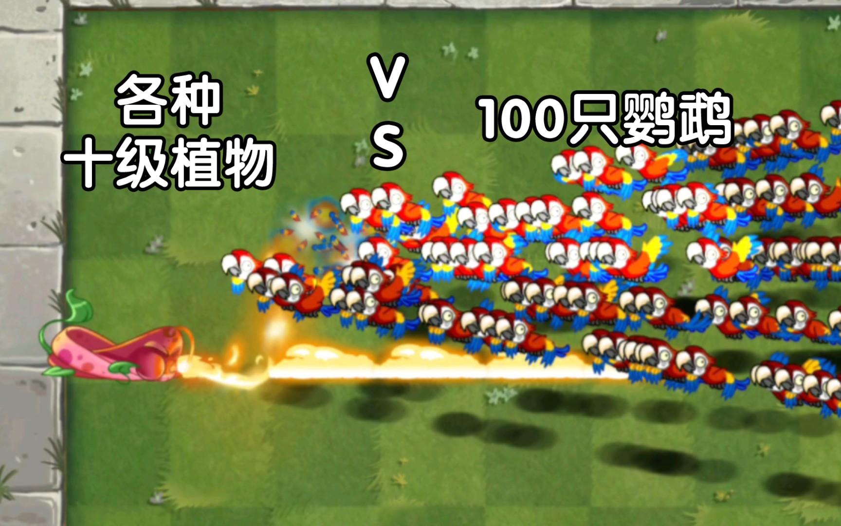 Berbagai 100 tanaman level 10 yang tumpang tindih VS ayam level 10 versi Cina [Pvz2]