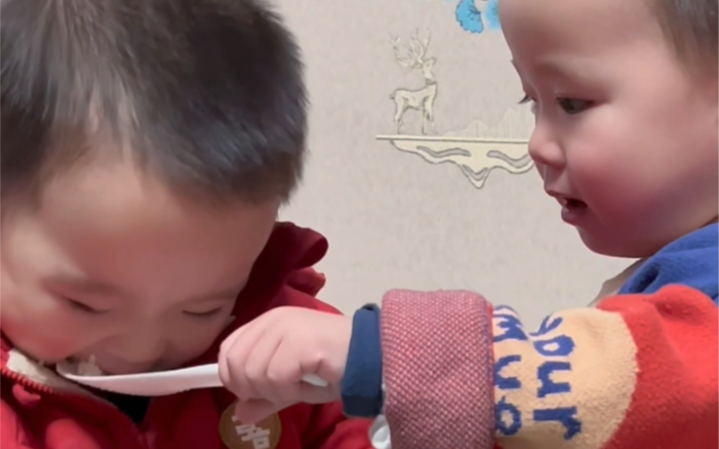 Bayi kembar menjadi tertarik dengan mikrofon dan mengantri untuk "berbicara"~