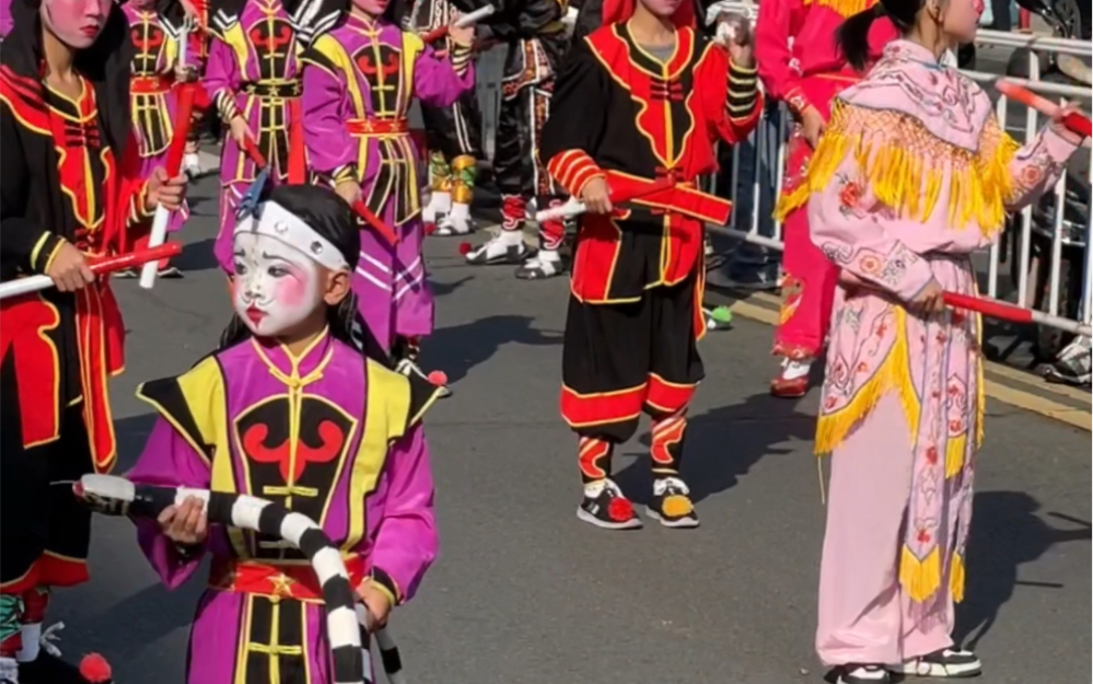Tim tari rakyat Chaoshan Yingge tampil dalam pakaian formal dengan tampilan yang megah, dan semua pe