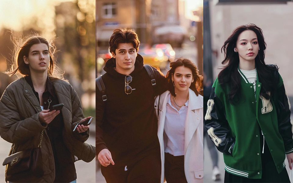 Adik perempuan mencoba jaket motor kulit musim gugur