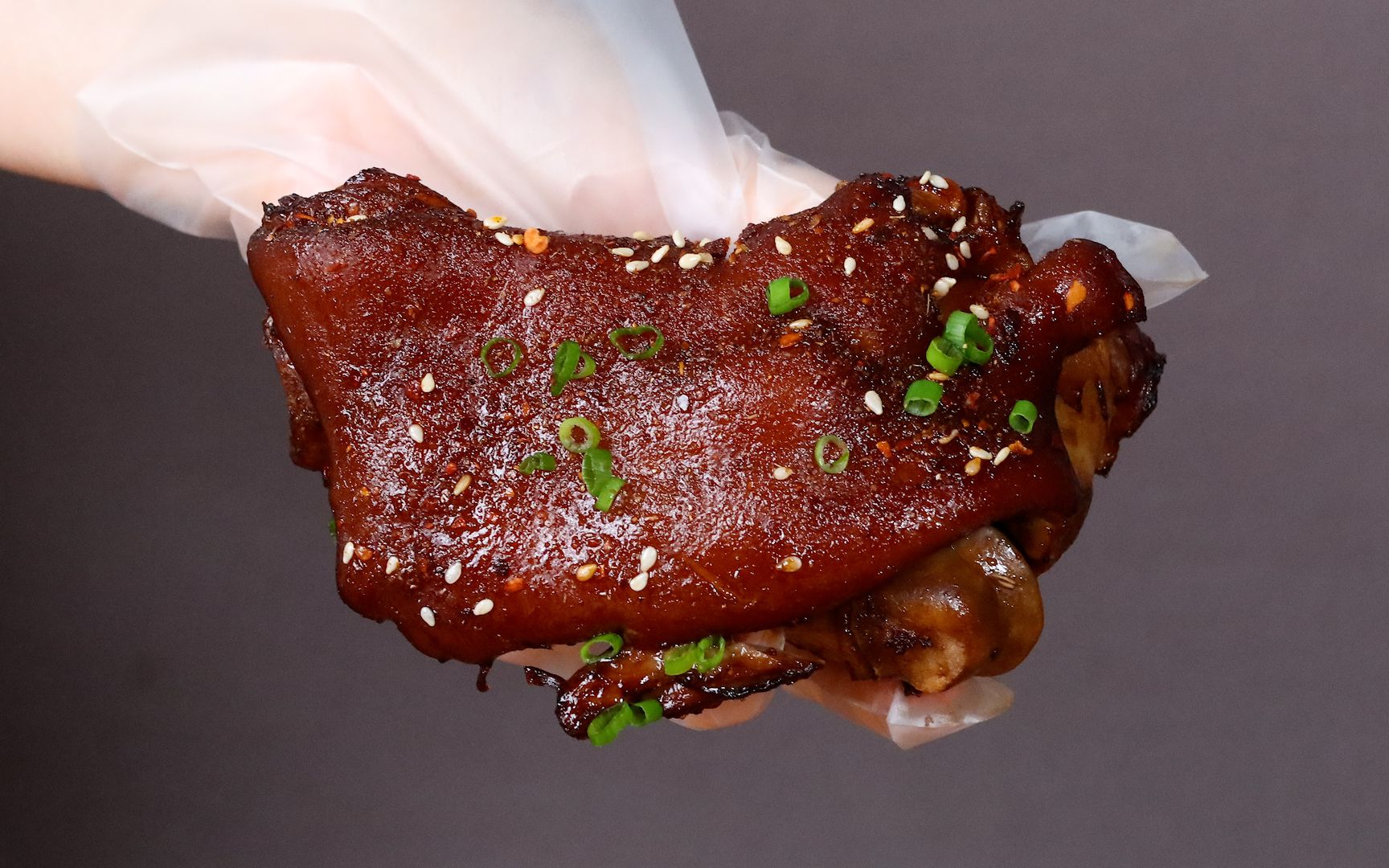 Udah habis? Aku mau versi PLUS! Burger Dobel Isi Kubis Acar, Perut Babi, dan Paha Ayam