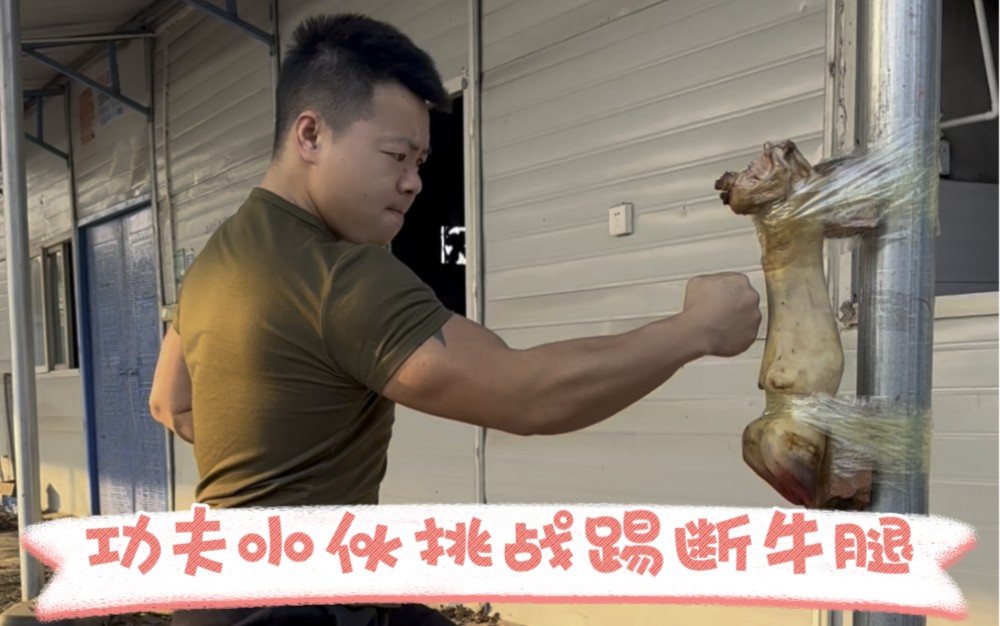 Pria tangguh menantang mematahkan tulang sapi dengan tangan kosong