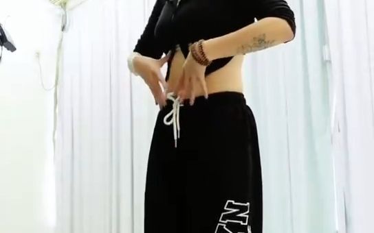 Kecantikan dalam rok denim dengan rambut dan tarian yang indah 200820
