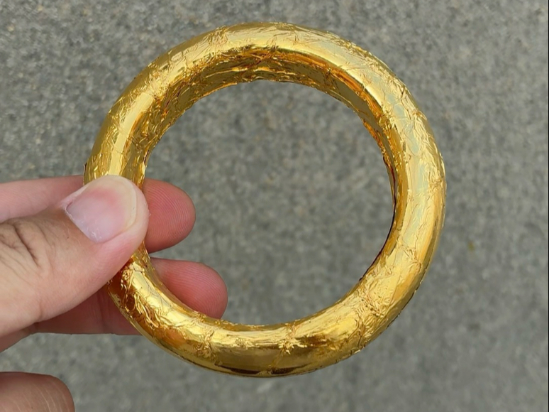 Gelang bertatahkan kerawang emas yang dibuat dengan 3000 meter benang emas dalam waktu setengah tahu