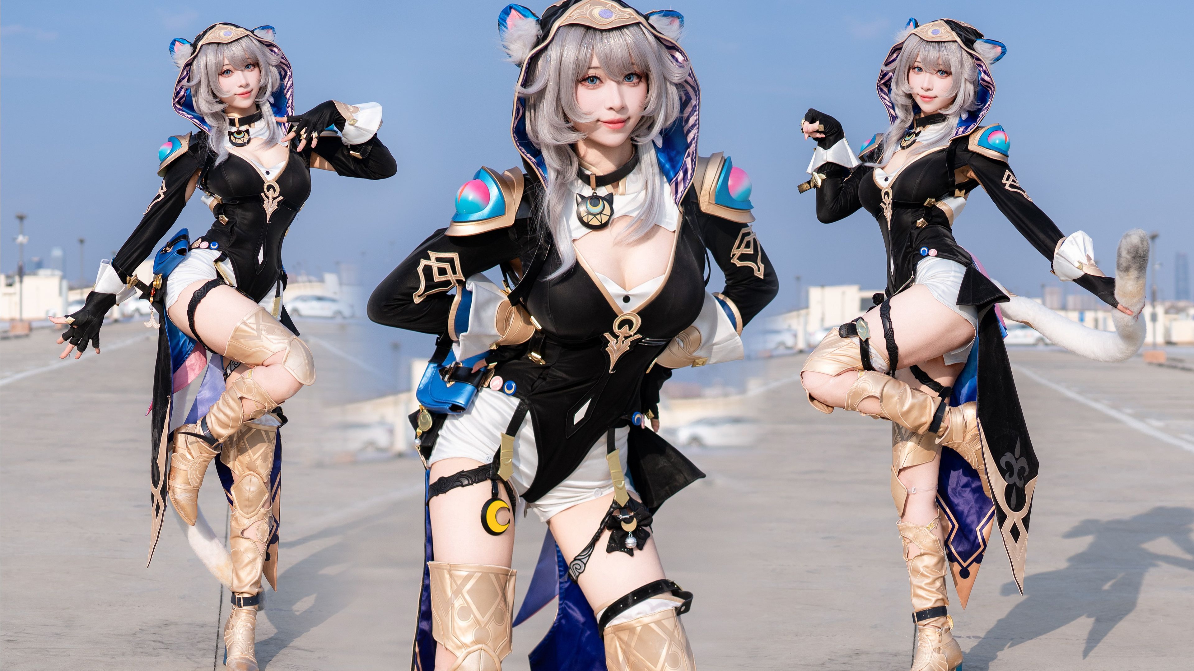 Anak kucing yang menawan, celana kulit dan sepatu bot hak tinggi, sangat seksi, versi telinga kucing