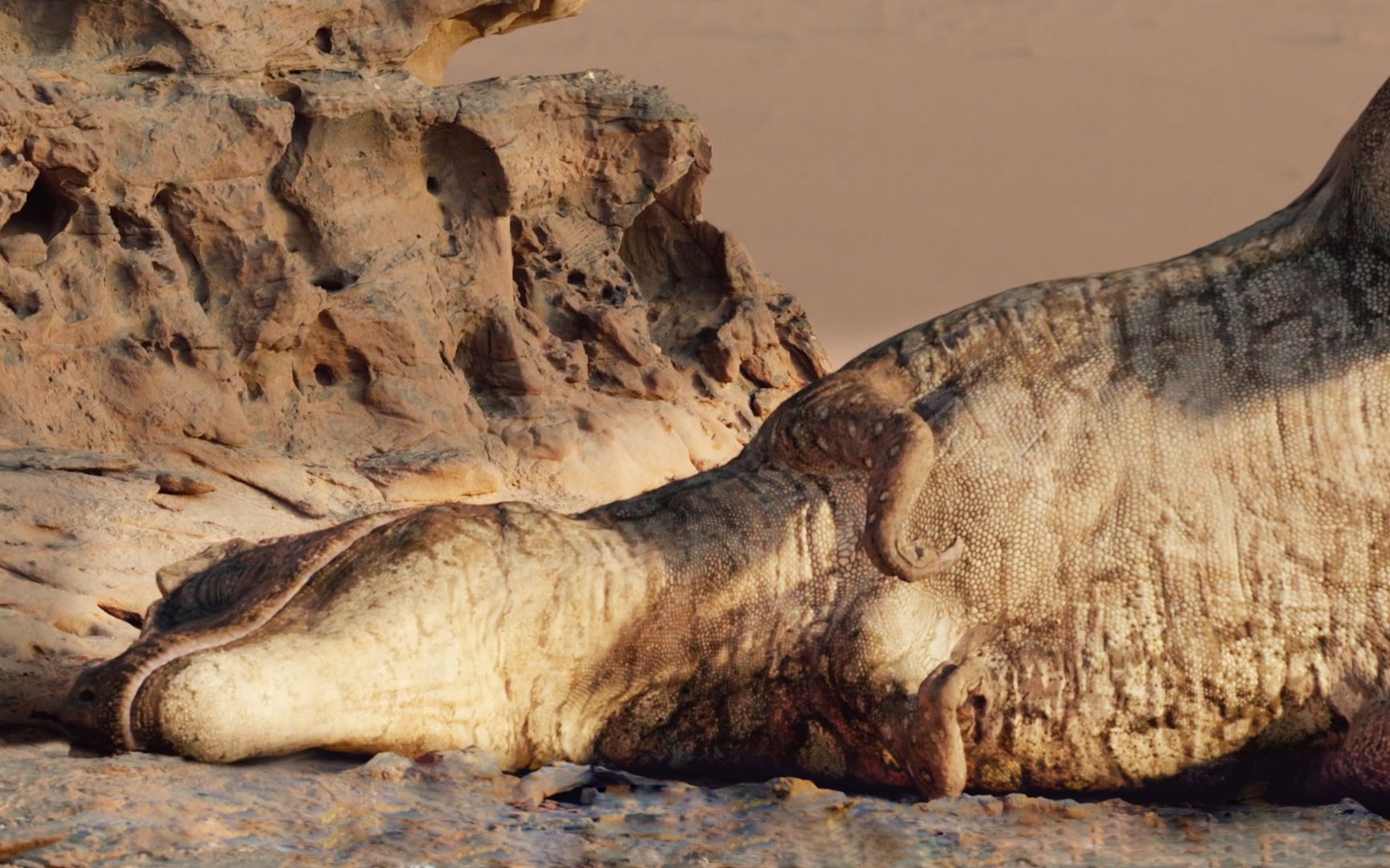 [Kualitas 4K terbaik] Penguasa laut Mosasaurus menelan hiu putih besar