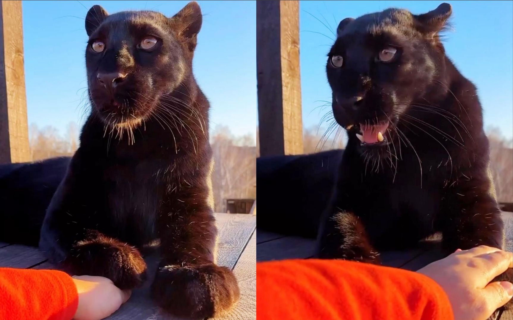 Apa yang terjadi ketika macan kumbang hitam peliharaan melihat orang asing?