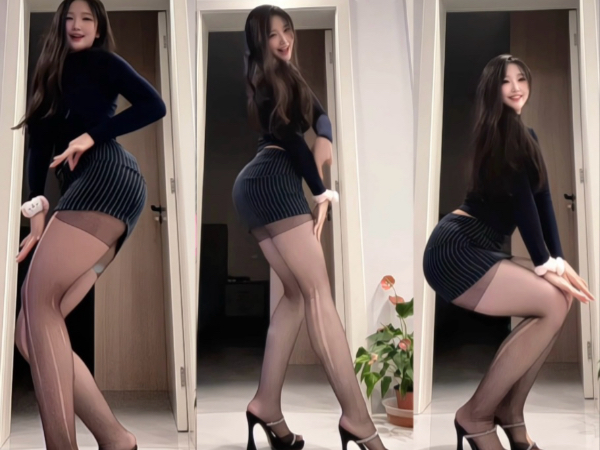 Sepatu hak tinggi, celana kulit, kamera asli tanpa filter kecantikan, sosok asli, tarian rok pendek