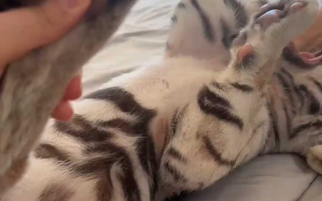 Anak harimau putih berkepala dua bertemu wisatawan untuk pertama kalinya