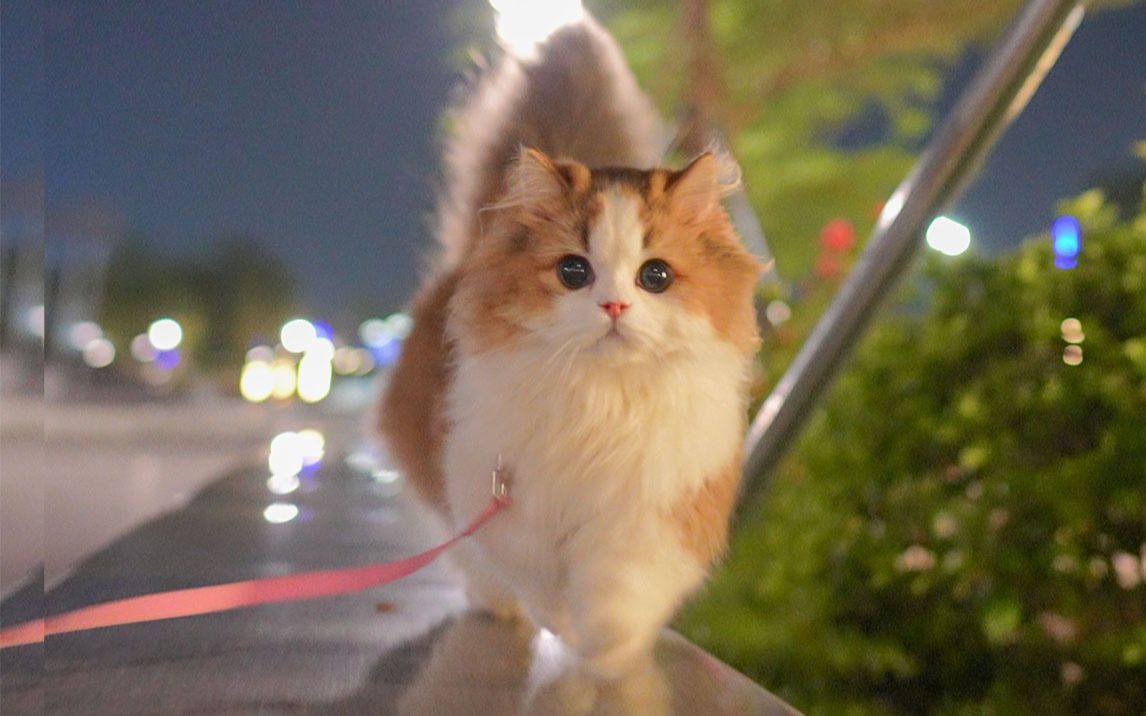 Berjalan-jalan dengan kucing tanpa jiojio, dia sangat senang