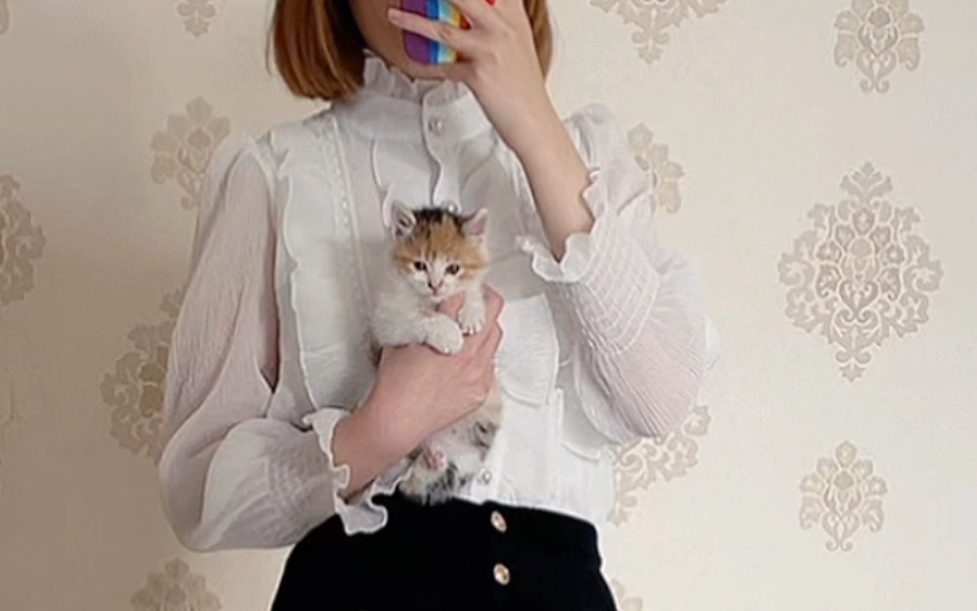 Aku mengambil anak kucing ini saat topan. Semoga kamu cepat tumbuh besar dan sehat!