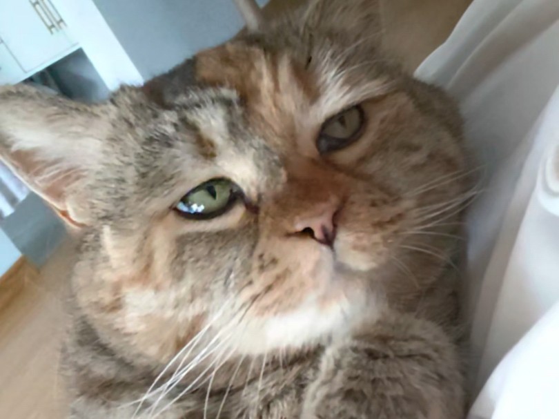 Begitu saya membuka mata, saya melihat seekor kucing sedang menunggangi saya