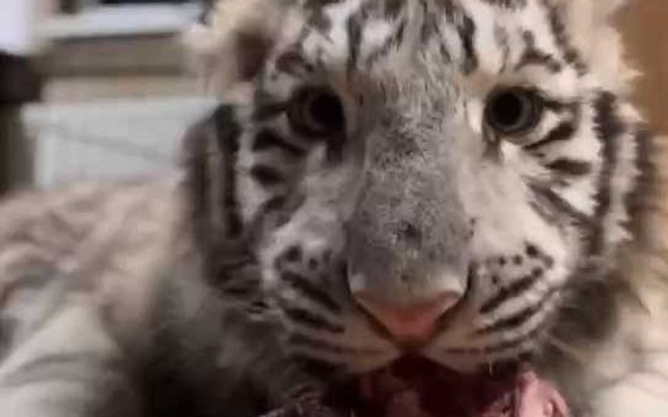 Anak harimau putih berkepala dua bertemu wisatawan untuk pertama kalinya