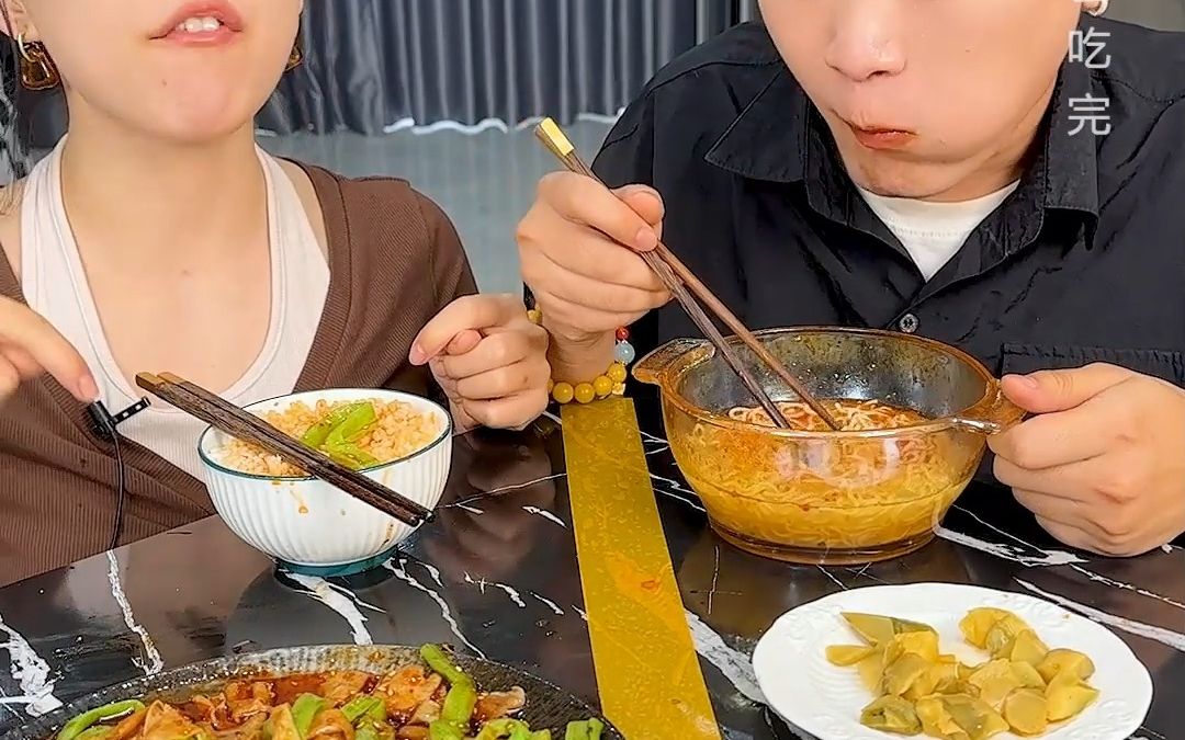 #Mie asam pedas Hari ini Binbin agak pintar, tapi... #pasangan makan setiap hari #cintai hidup, cint