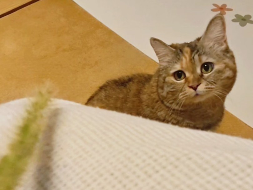 Begitu saya membuka mata, saya melihat seekor kucing sedang menunggangi saya
