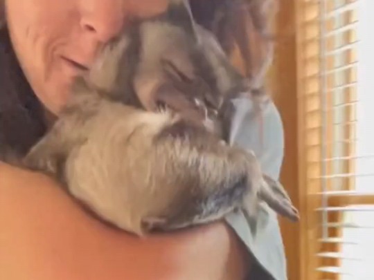 Peliharaan Imut-Monyet Kecil Membujuk Bebek Kecil Untuk Tidur