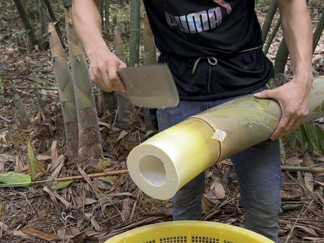 Ayo lihat aku memotong rebung untuk menghilangkan stres