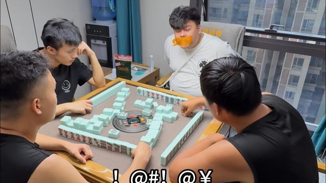 Seorang pria menyembunyikan kartu di telapak tangannya saat bermain mahjong, tetapi dia ketahuan