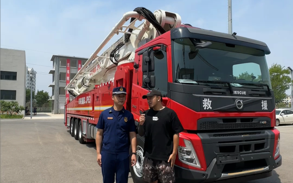 Operasi penyelamatan truk pemadam kebakaran dan helikopter, sang adik sangat senang