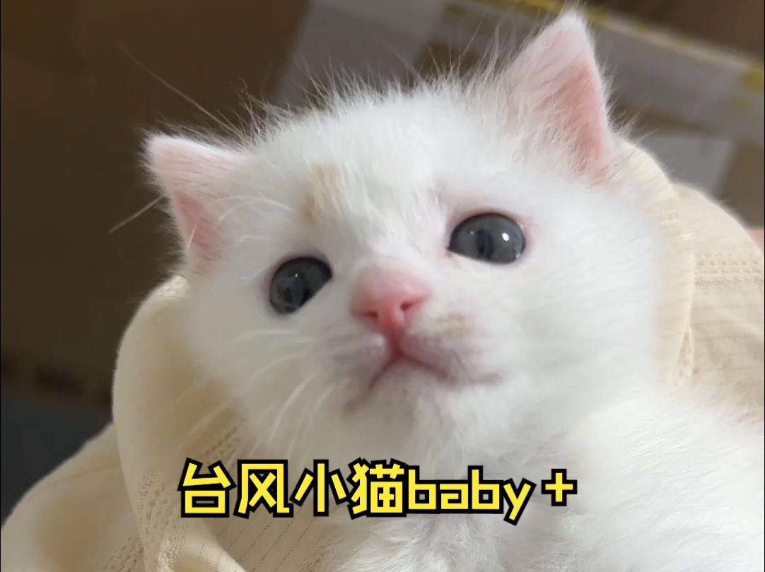 Aku mengambil anak kucing ini saat topan. Semoga kamu cepat tumbuh besar dan sehat!